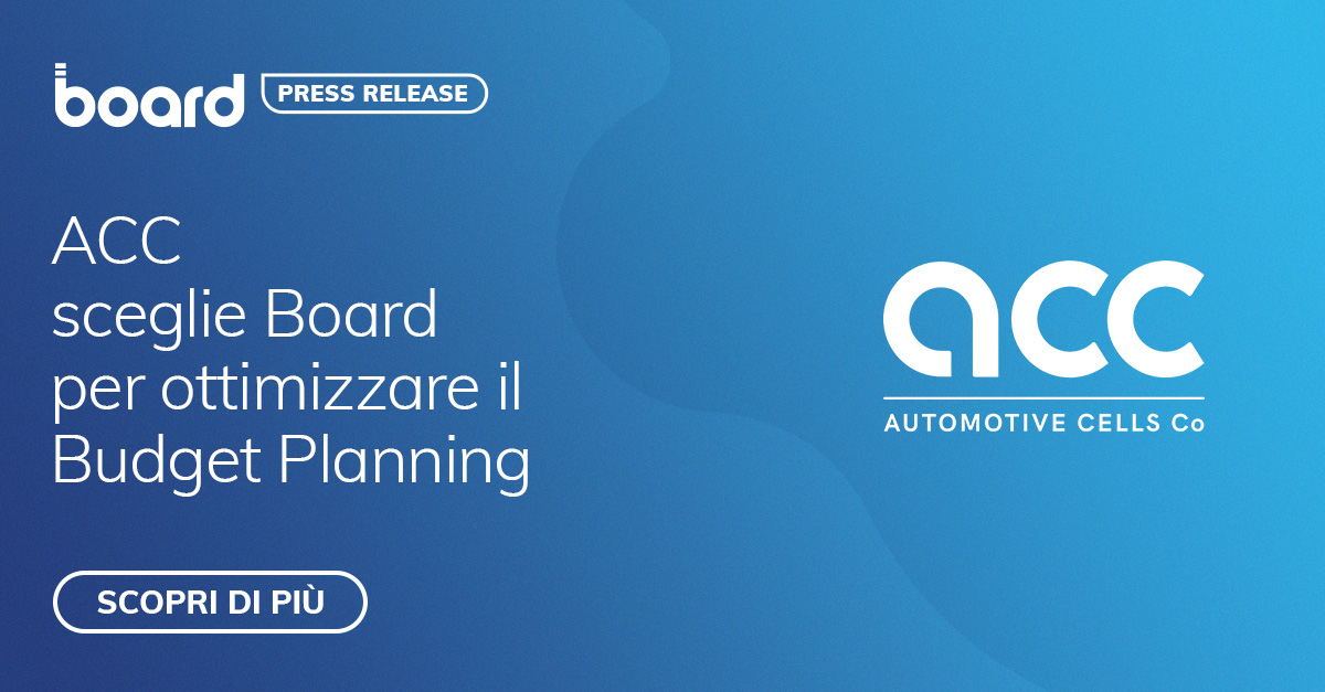 Board, leader nelle soluzioni di Intelligent Planning, annuncia la collaborazione con Automotive Cells Company (ACC), azienda specializzata nella progettazione e produzione di batterie per veicoli elettrici in Europa. La piattaforma di Board è stata scelta per ottimizzare la pianificazione del budget.
