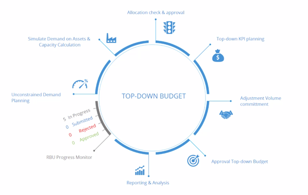 Das Ergebnis ist ein integrierter globaler Finanzplanungsrahmen, der durch die Zuweisung von Produktionsanlagen untermauert wird. Integrale Bereiche wie die unterjährige Zuteilung, die operative Produktplanung, Prognosen, die Portfoliosimulation und die Strategieentwicklung sind alle in diesem Konzept eingeschlossen.
