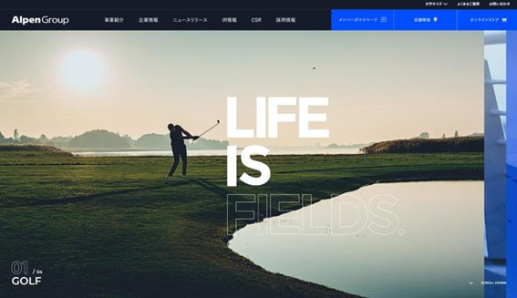 アルペングループのコーポレートサイトではさまざまな注力事業が紹介されている。ゴルフはその一つだ