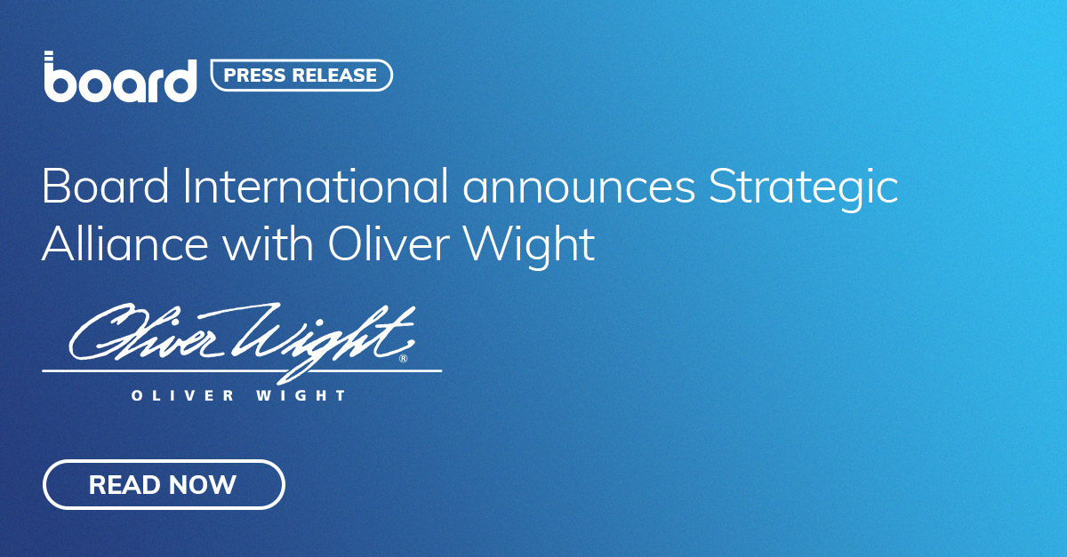 Board International, the Intelligent Planning Platform which delivers solutions that help organizations plan smarter — enabling actionable insights and better outcomes, today announced a strategic alliance with leading management consultants and business transformation specialists Oliver Wight (AP and EAME).