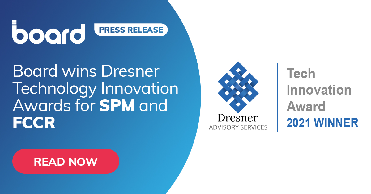 Board recibe el premio a la Innovación Tecnológica de Dresner Advisory Services por la Gestión del Desempeño de Ventas y Consolidación Financiera, Gestión de Cierres e Informes