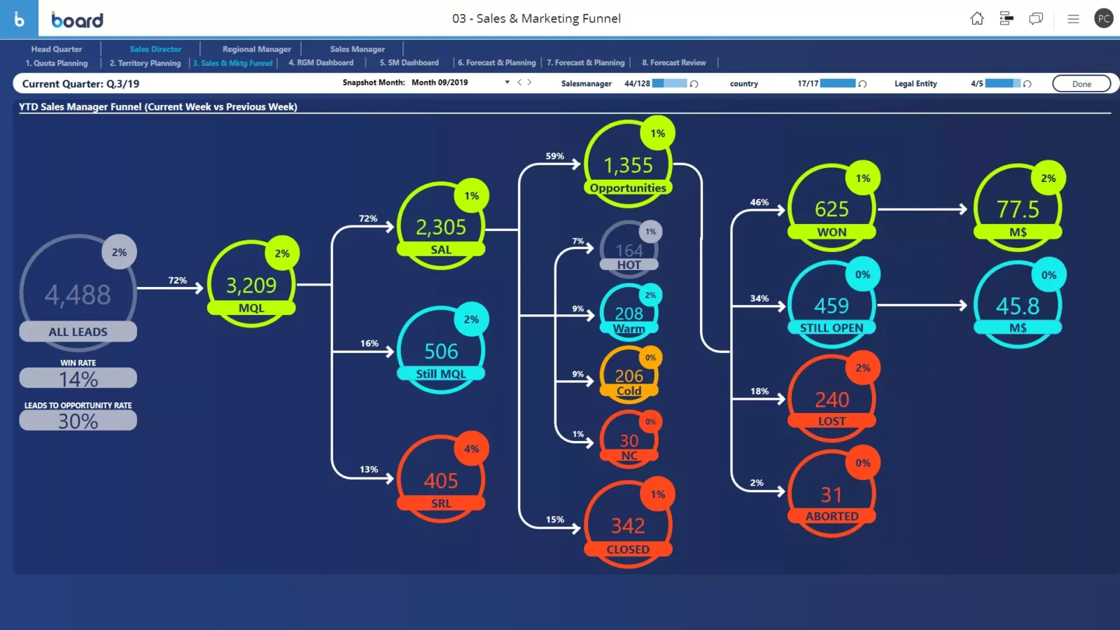 Take advantage of Board’s integration with operational CRM and SFA systems to acknowledge marketing and sales funnel information and retrieve detailed data relative to marketing and sales qualified leads
