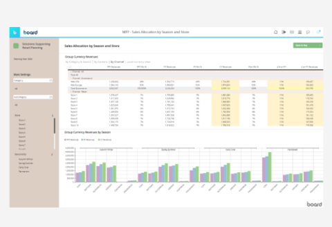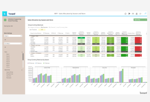 全体戦略からSKU単位の詳細なインサイトまで、商品計画をシームレスにスケールさせましょう。Boardの統合プラットフォームは、BI・財務・予測機能を一体化し、最も重要なレベルでのデータ分析を可能にします。