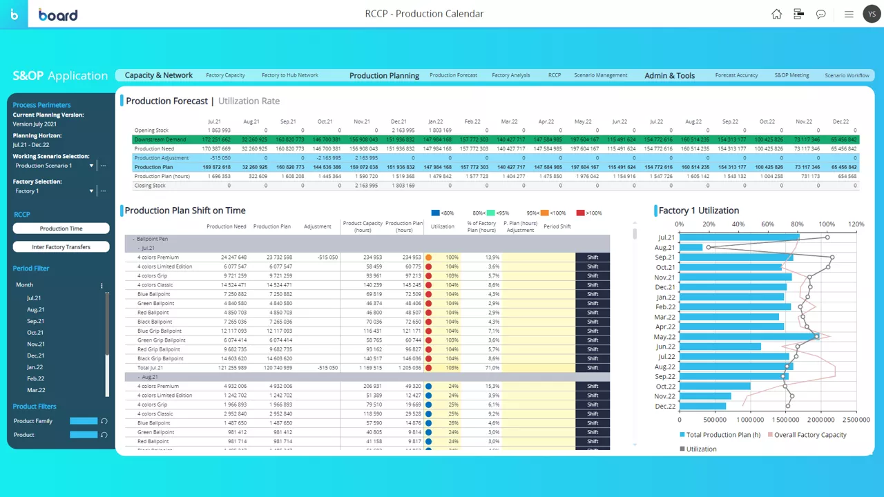 Boardの意思決定プラットフォームにより、企業はビジネスデータを透明性の高い統合ビューで確認し、それに基づいて生産能力計画(RCCP)を正確かつ効果的に実施できます。