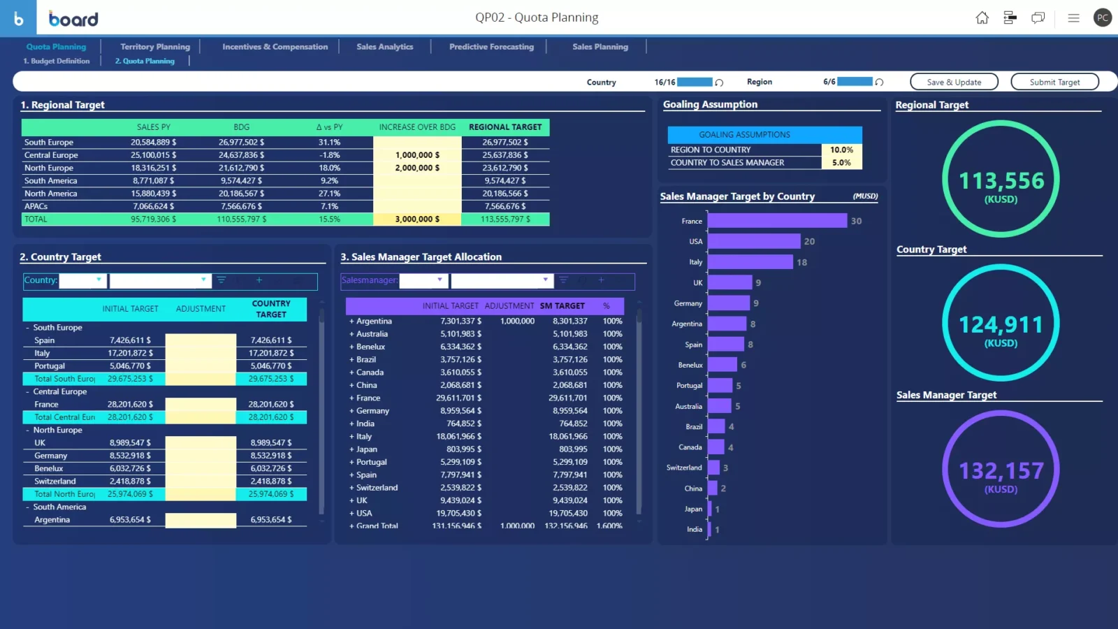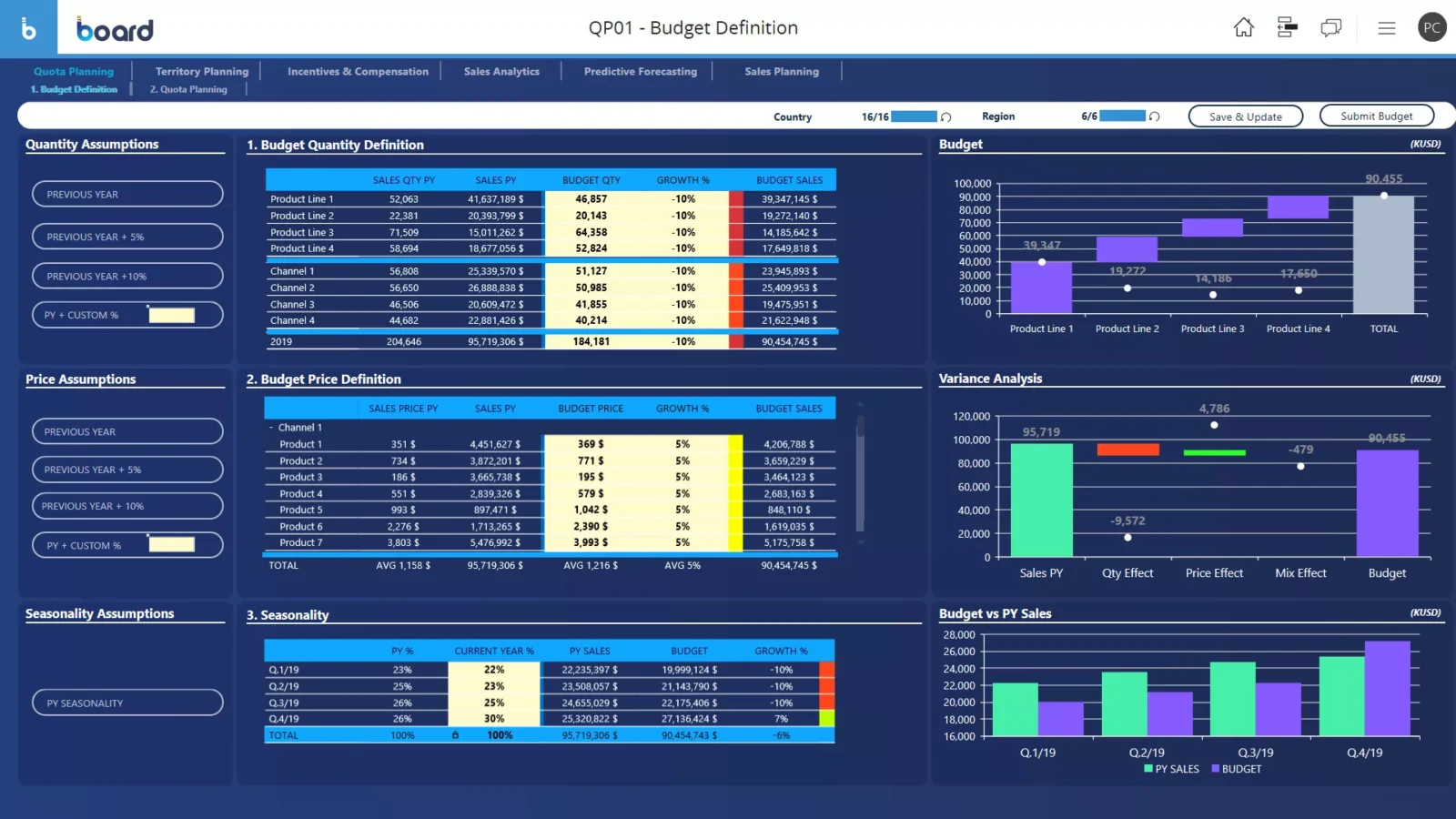 Monitor and control sales performance, focus commercial efforts on strategic targets, plan key sales value drivers, and re-orient commercial action plans according to in-depth sales insights with the Board Enterprise Planning Platform.