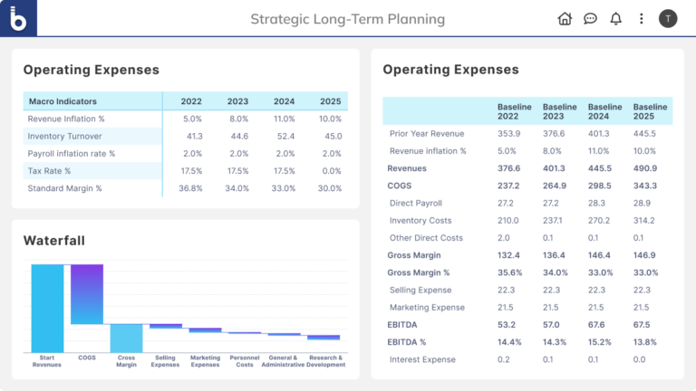 戦略目標を明確なドライバーに落とし込み、P&Lやその他の財務指標への影響を可視化。常にビジネスの全体像を把握できます。