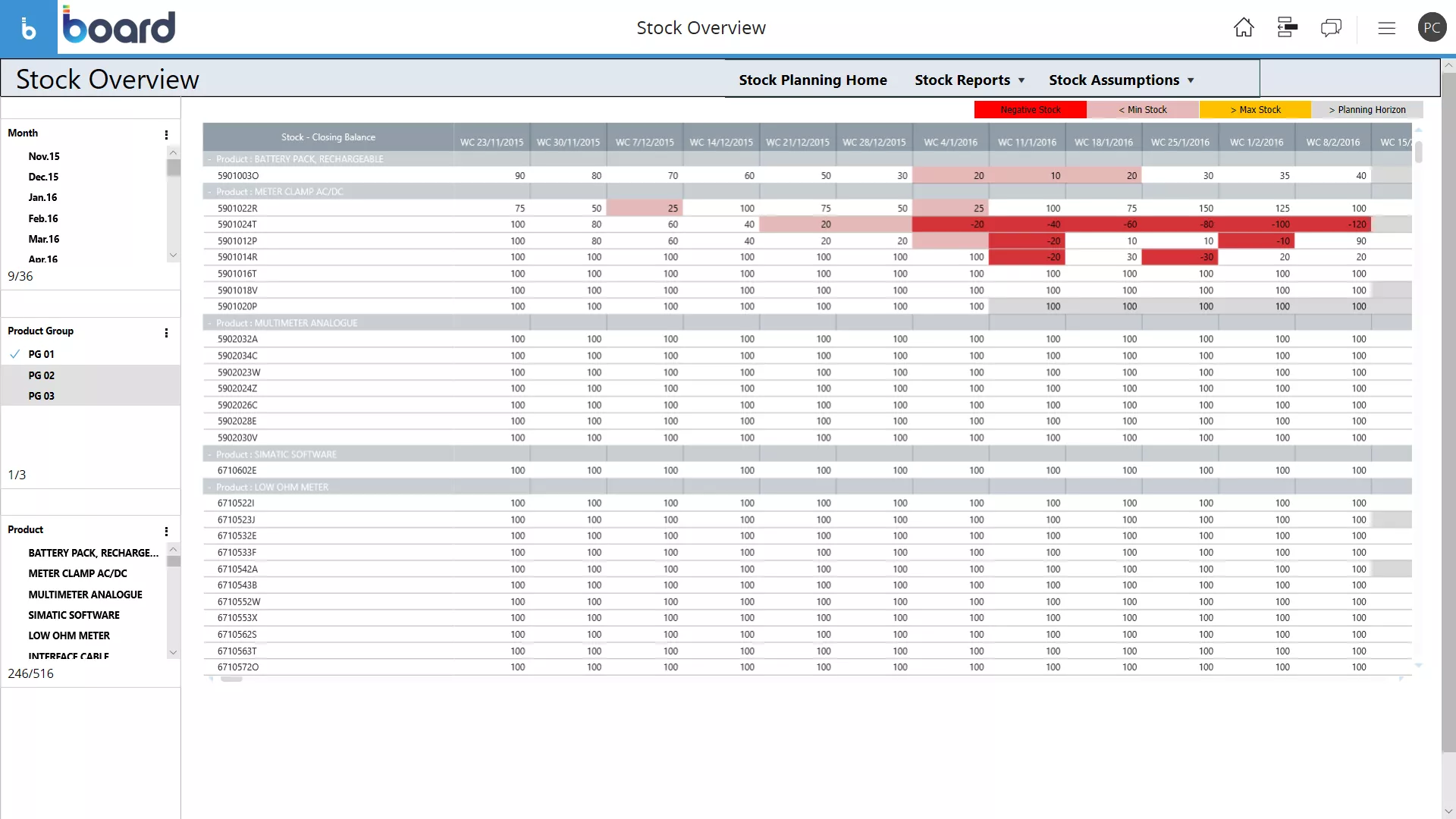 在庫の流入および流出の計画を立て、安全/バッファの在庫閾値を定義。この計画は、補充の基準を考慮し、需要計画、調達計画、生産能力&生産計画を踏まえたものとします